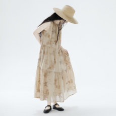 现货【人间四月】圆领碎花连衣裙轻薄浪漫绣花长裙女夏季款文艺裙