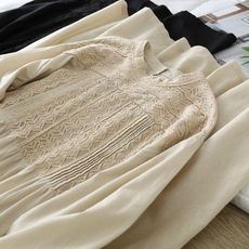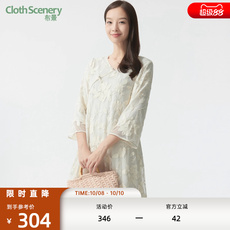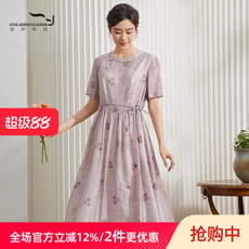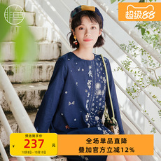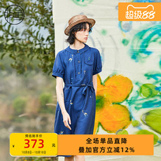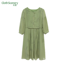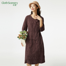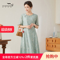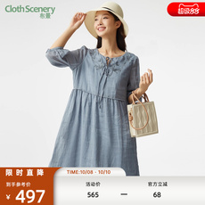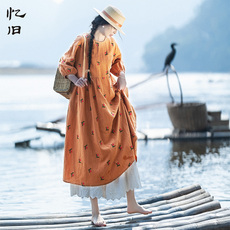 布景连衣裙女早秋新品简约文艺绣花含苎麻宽松可收腰裙子0370