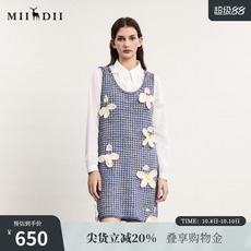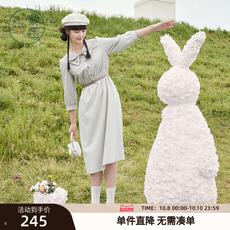 非鱼气质文艺女装连衣裙秋季新款绣花百搭中裙休闲百褶裙子