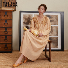 TALASA商场同款丝棉连衣裙2025年春新款设计感刺绣宽松显瘦文艺