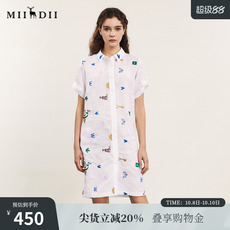 谜底夏新款恐龙剪影绣花H型宽松短袖连衣裙文艺小众235ML6048