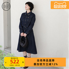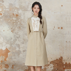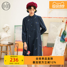 谜底刺绣连衣裙长袖女2024秋款复古文艺修身衬衫式长裙248ML8301