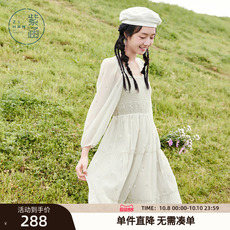 西町村屋文艺风镂空连衣裙女装2025秋季新款绣花连衣裙XHAB10890
