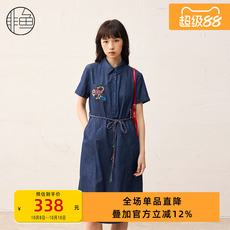 [专柜同款]Yifini/易菲文艺刺绣宽松H型短袖连衣裙女春秋新款