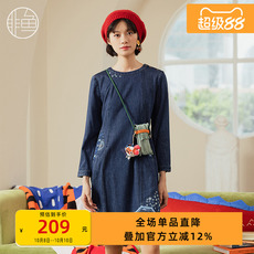 谜底连衣裙长袖冬新品复古文艺绣花宽松中长卫衣裙234ML1489