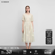 sdeer圣迪奥夏季女装文艺V领系带收腰绣花连衣裙S232Z12QN
