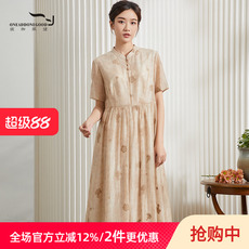 新款杭州真丝连衣裙女桑蚕丝妈妈复古刺绣显瘦文艺范裙子气质夏季