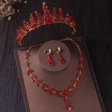 日韩式新娘结婚饰品头饰头花发饰敬酒服皇冠耳环项链红色三件套装