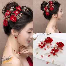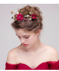 优雅韩式新娘盘发饰品红色头花发梳发夹边夹发卡花朵头饰配饰310