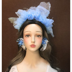 韩式个性创意新娘头饰夸张纱花发箍蓝白红色礼服配饰女童走秀发饰