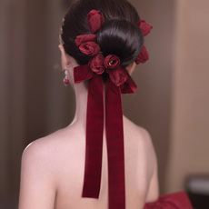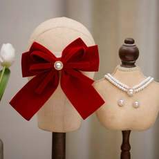 2024新款复古敬酒服头饰新娘红色结婚丝绒蝴蝶结发夹网红发饰韩式