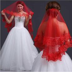 新娘结婚红色头纱韩式单层婚礼蕾丝花边盖头婚纱超长头饰拍照道具
