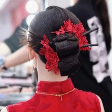 超仙红色头饰一对花朵唯美韩式新中式镂空树叶新娘头饰秀禾红