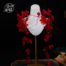新娘头饰红色羽毛花朵敬酒服对夹超仙百搭礼服汉服结婚发饰韩式
