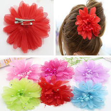 韩版新款儿童头饰女孩边夹红色串珠扎发手工花发饰新娘表演盘发