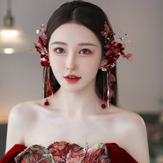 新娘头饰结婚红色婚纱礼服发饰套装韩式婚礼超仙敬酒服配饰品欣可