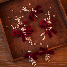 新款复古敬酒服头饰新娘红色结婚丝绒蝴蝶结发夹网红发饰韩式饰品