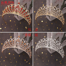 新娘皇冠头饰儿童公主生日红色礼服婚纱头饰韩版大气水晶女童王冠