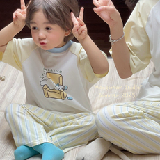 欧孕儿童睡衣夏季薄款2025新款男孩女童纱布家居服套装宝宝亲子装