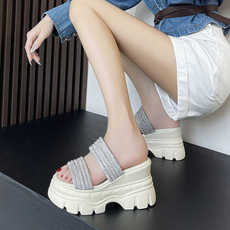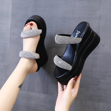 坡跟凉拖鞋女2025夏季新款新款时尚百搭松糕底高跟凉鞋水钻拖鞋女