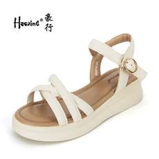 豪行2024年夏季新款24203192坡跟凉鞋真皮时尚百搭搭扣休闲女凉鞋