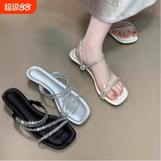 JS7778新款2025 跨境圆头时尚夹趾镂空女凉拖坡跟休闲大码凉鞋