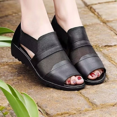 2025年新款夏平底品牌软皮软底坡跟凉拖鞋中老年女鞋妈妈凉鞋低跟