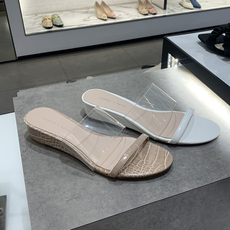 坡跟拖鞋女夏外穿2024新款增高透明一字带凉拖沙滩厚底设计感凉鞋