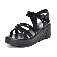 大东绑带凉鞋女鞋2024夏季新款时尚坡跟高跟方头松紧带厚底鞋1202