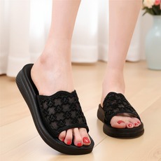 拖鞋女夏外穿2025年新款夏季中年女士凉拖鞋厚底坡跟软底夏天凉鞋