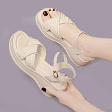 凉鞋女2025新款夏季外穿女鞋厚底坡跟软底平底休闲防滑大码妈妈鞋