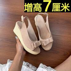 坡跟凉鞋女2025年新款洋气夏季蝴蝶结松糕厚底仙女风配裙子的凉鞋
