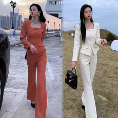 时尚气质西服套装女2024早春新款收腰显瘦上衣高腰休闲裤两件套潮