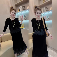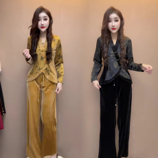2023秋季新款百搭金丝绒套装女中长款宽松遮肉上衣休闲裤两件套潮
