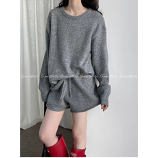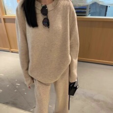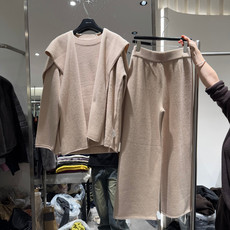 欧洲站2025秋冬欧货新款懒散风圆领羊毛毛衣+针织阔腿裤套装女潮