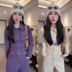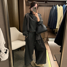 时尚洋气套装女2025冬季新款娃娃领拉链上衣+阔腿长裤两件套装潮