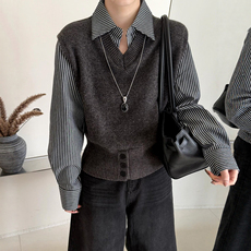 假两件羊毛针织马甲衬衫两件套装女欧洲站2025冬装新款欧货女装潮