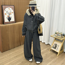 狐狸毛领加绒卫衣阔腿裤两件套装女欧洲站2025冬装新款欧货女装潮