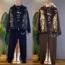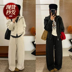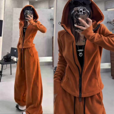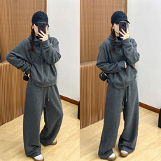 休闲毛粒绒套装女2025冬季新款连帽开衫外套+阔腿长裤两件套装潮