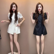 2025夏季新款时尚复古套装女收腰显瘦开叉设计感上衣短裤两件套潮