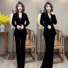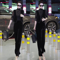 气质高档丝绒女士套装2024秋季新款收腰显瘦西服外套百搭休闲裤潮