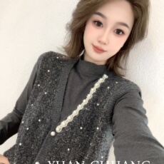 欧洲站秋冬季新款重工亮片钉珠针织马甲+T恤套装女时尚洋气1128