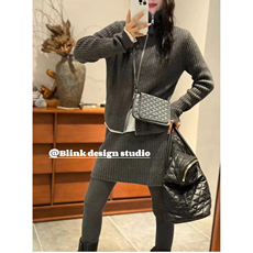 欧洲站2025冬季新款时尚圆领纯色简约羊毛针织套装女款欧货潮8961