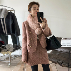 羊羔毛领羊绒加绒外套半身裙两件套装女欧洲站2025冬装新款欧货潮