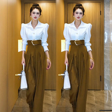 气质高街时尚套装女2025春季新款百搭潮流百搭衬衫高腰显瘦休闲裤