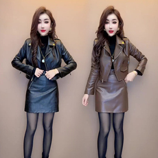 气质高街女神范pu皮套装女秋季新款洋气潮流外套百搭短裙两件套潮