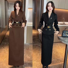 时尚气质高档西服套装女2024春季新款收腰显瘦外套高腰开叉裙子潮