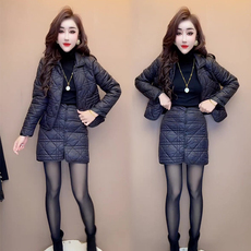 2024秋冬新款时尚简约百搭棉服套装女休闲短外套别致短裙两件套潮