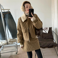 羊羔毛翻领羽绒服半身裙两件套装女欧洲站2025冬装新款欧货女装潮