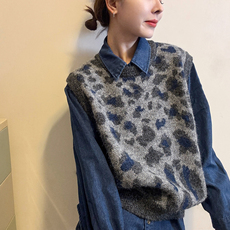 豹纹羊毛针织衫牛仔衬衫两件套装女欧洲站2025冬装新款欧货女装潮